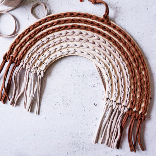 Bundle of t-shirt yarn and holiday basket wooden round base