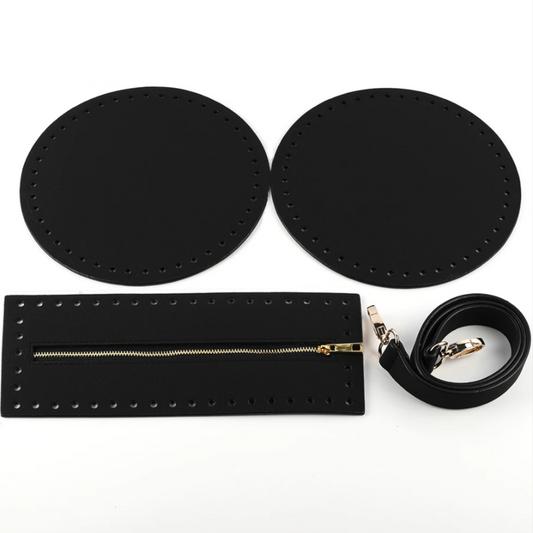 Crochet Backpack Kit with Leather Bag Base Accessories, Purse Hardware, Tshirt yarn and Crochet Pattern dark colors