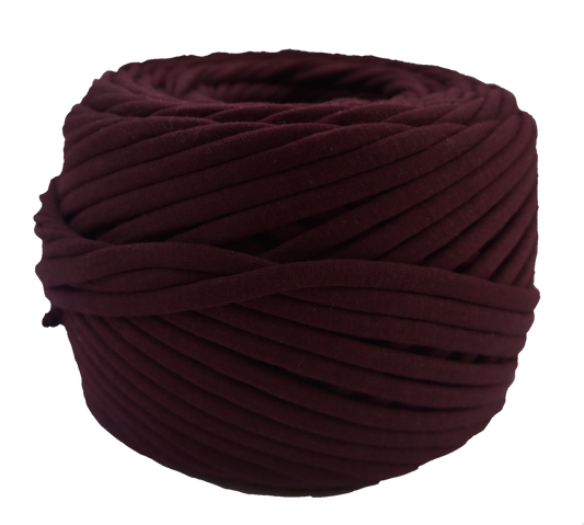 T-shirt yarn for crocheting baskets, bags, rugs and home decor. Dark burgundy
