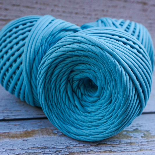 T-shirt yarn for crocheting baskets, bags, rugs and home decor. Sky blue