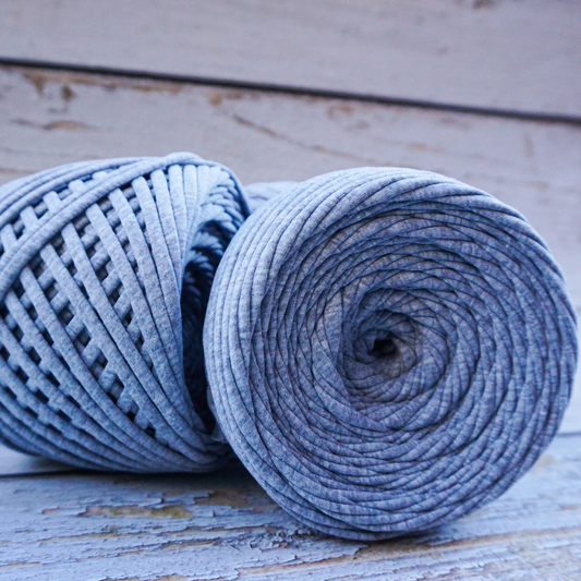 T-shirt yarn for crocheting baskets, bags, rugs and home decor. Bulky Yarn Silver blue