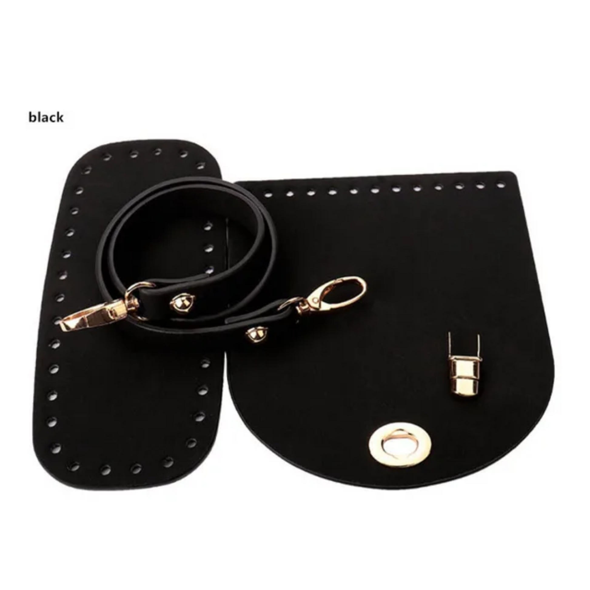 2. Leather accessories and hardware kit (leather base, leather flap, 1 adjustable strap 32 " long, purse lock)