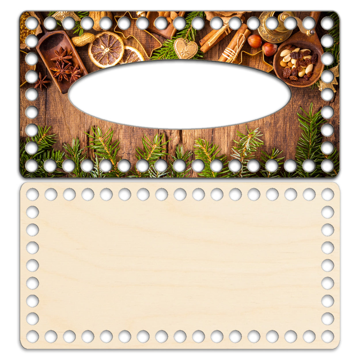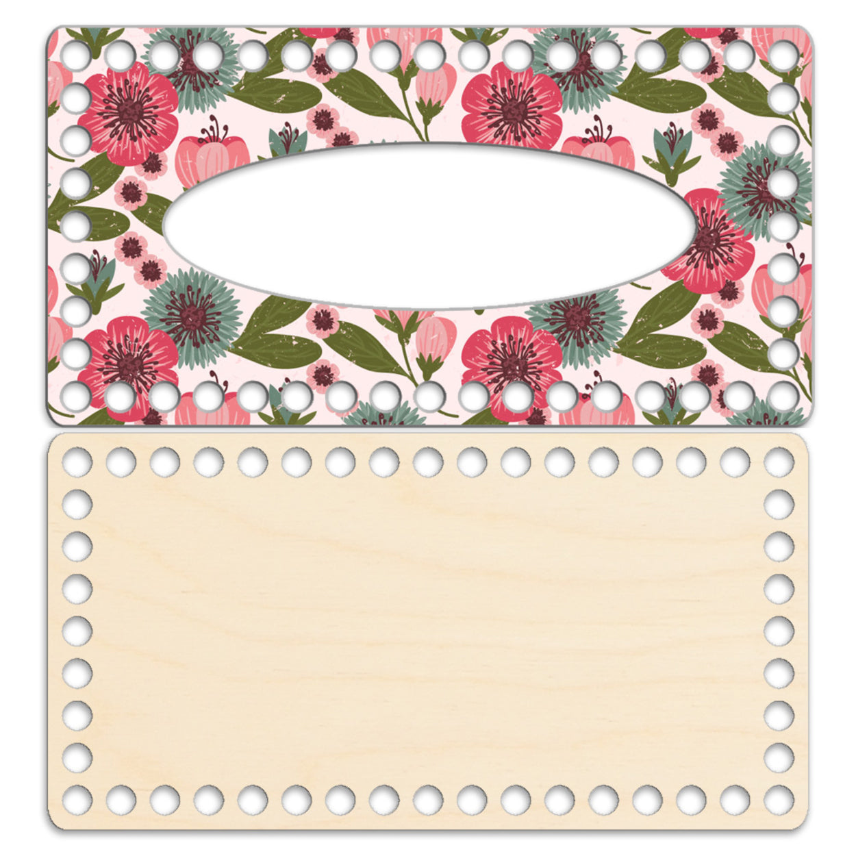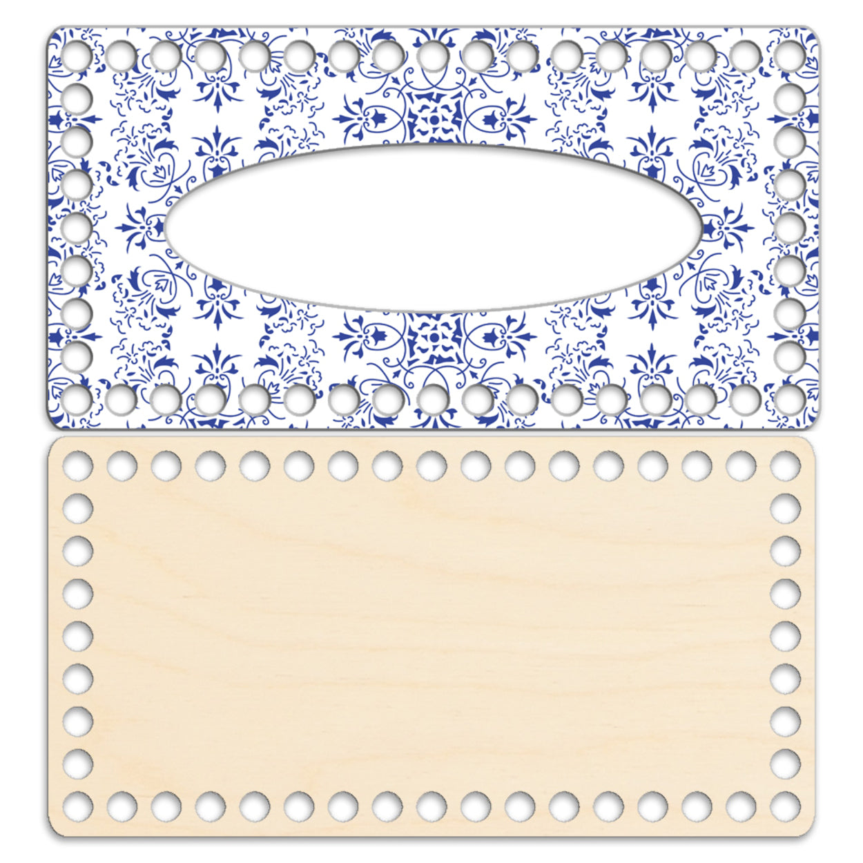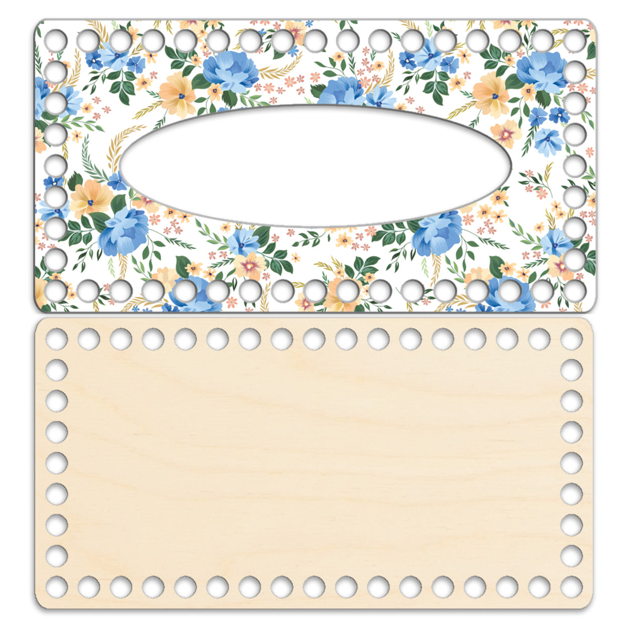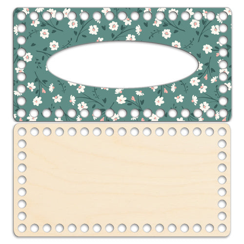 • Rectangular wooden bottom for tissue box measures approximately 9"x 4 3/4"