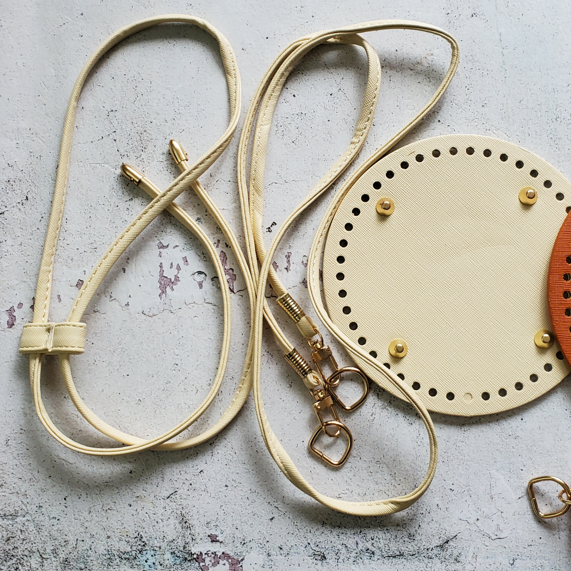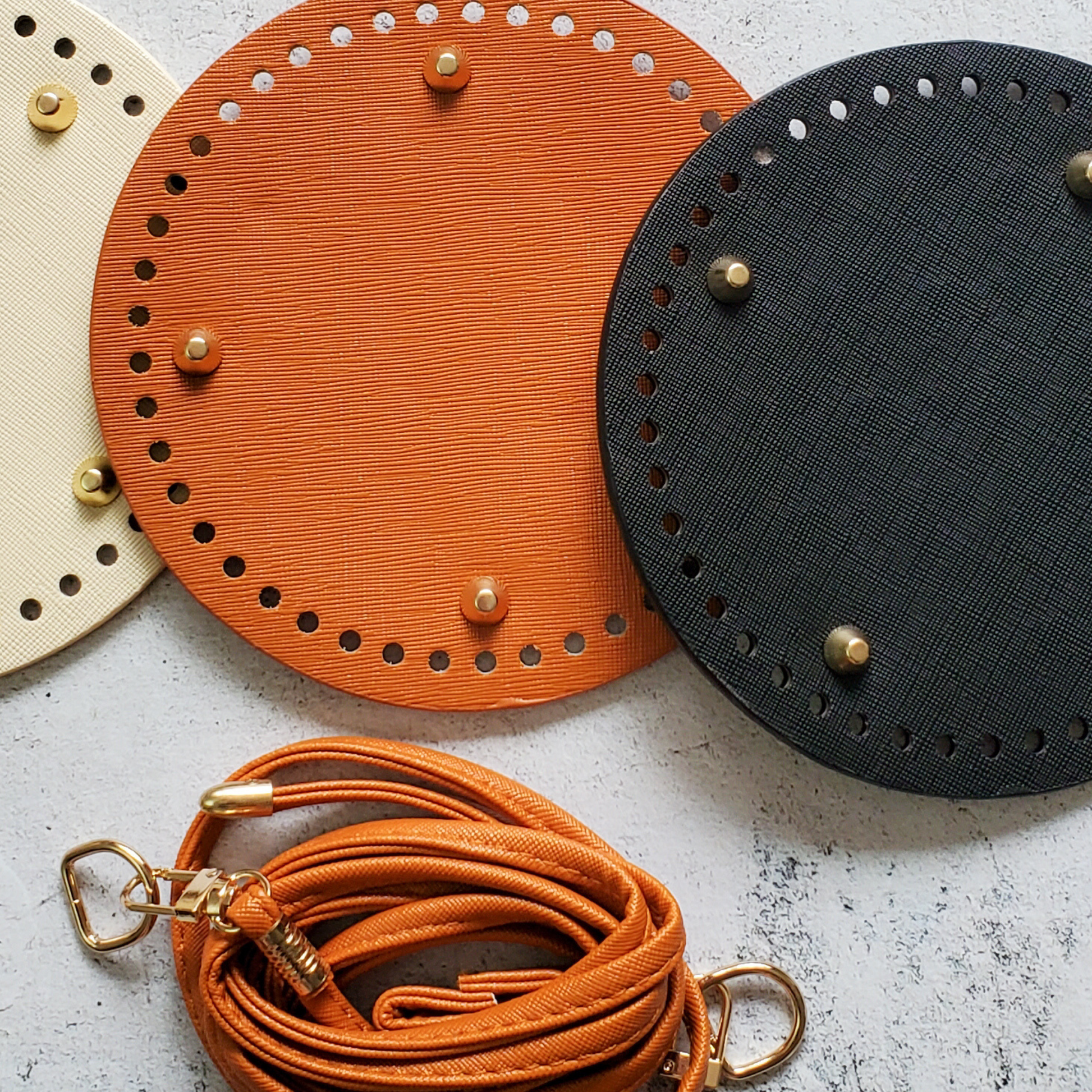 Round Leather Bottom with purse strap set for Crochet Bag Making