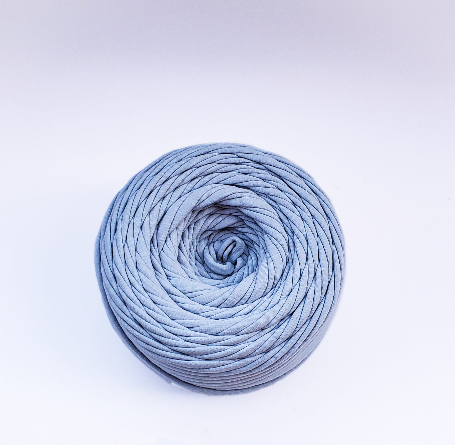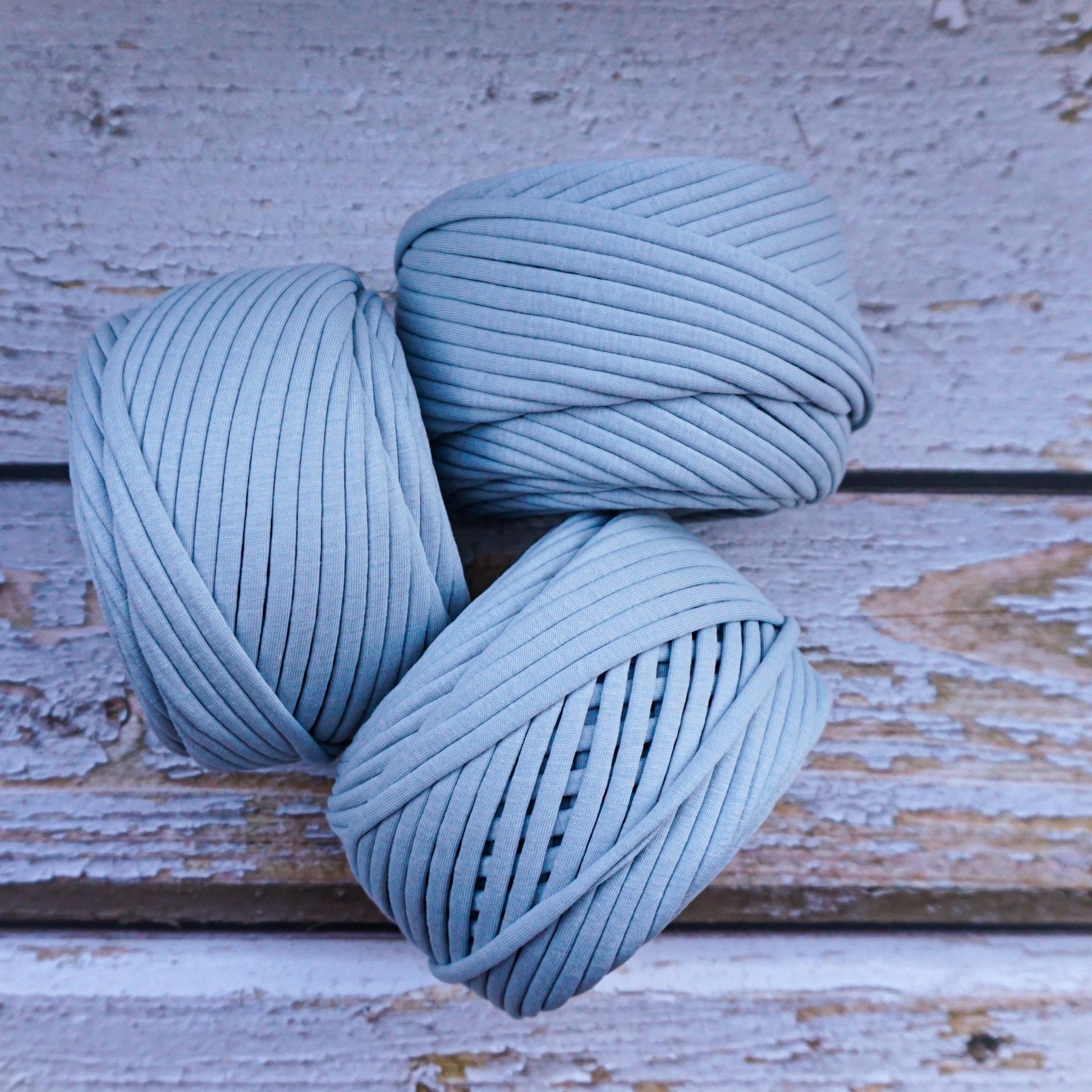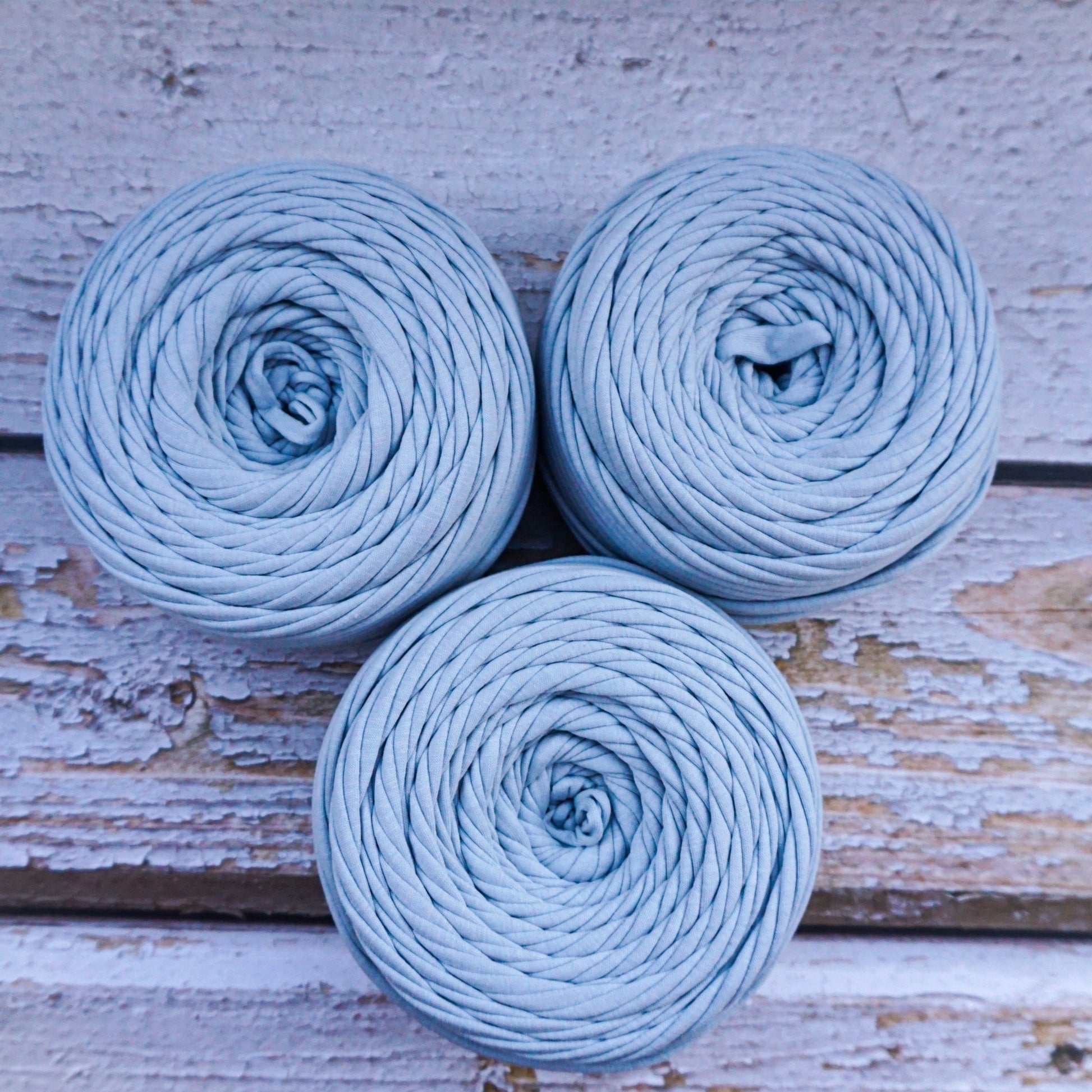 T-shirt yarn for crocheting baskets, bags, rugs and home decor. Bulky Yarn Silver blue