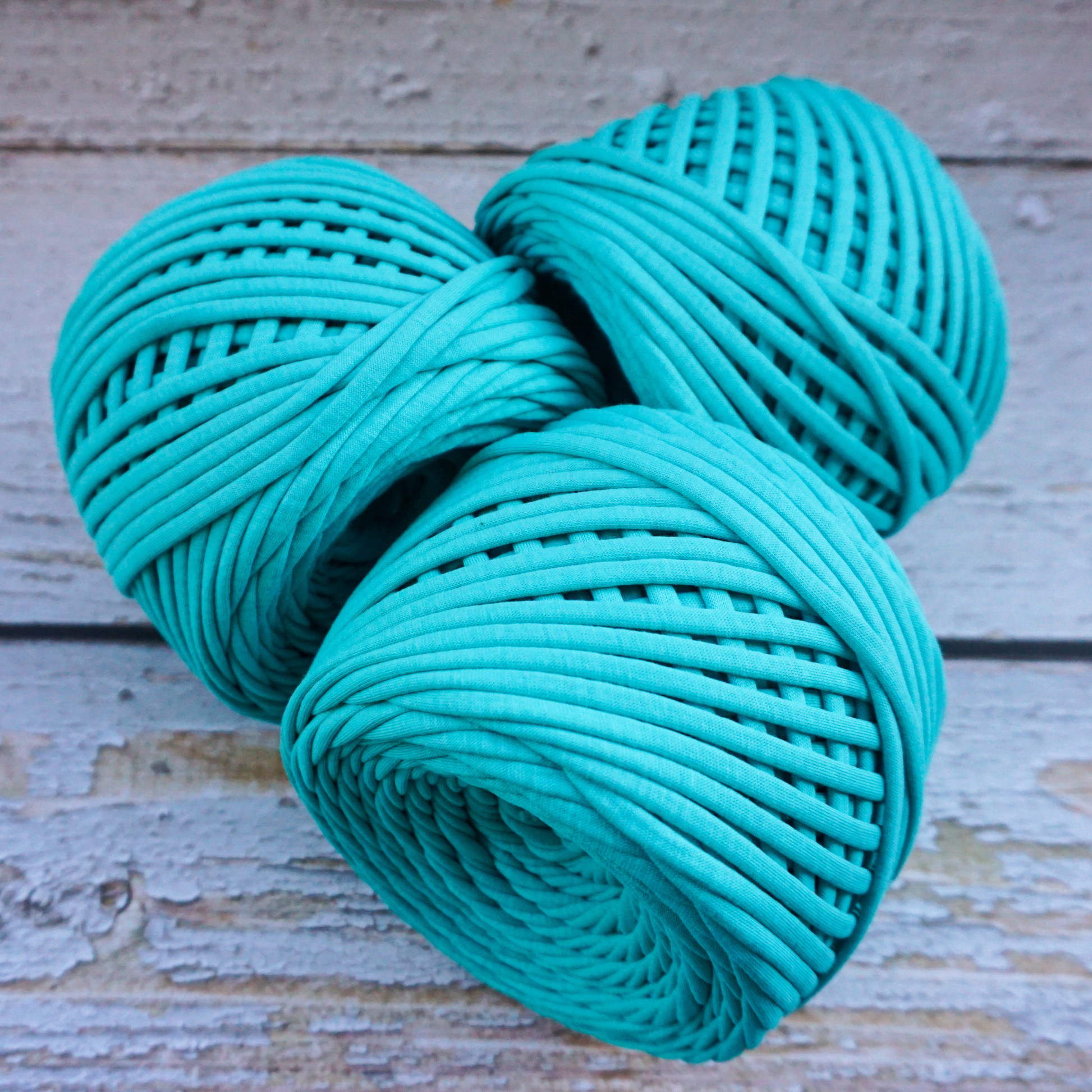 Premium quality fabric t-shirt yarn with equal thickness throughout all length with even edges. Very soft material yet finished items hold its shape. It is truly a pleasure to work with this yarn of great variety of colors. Emerald