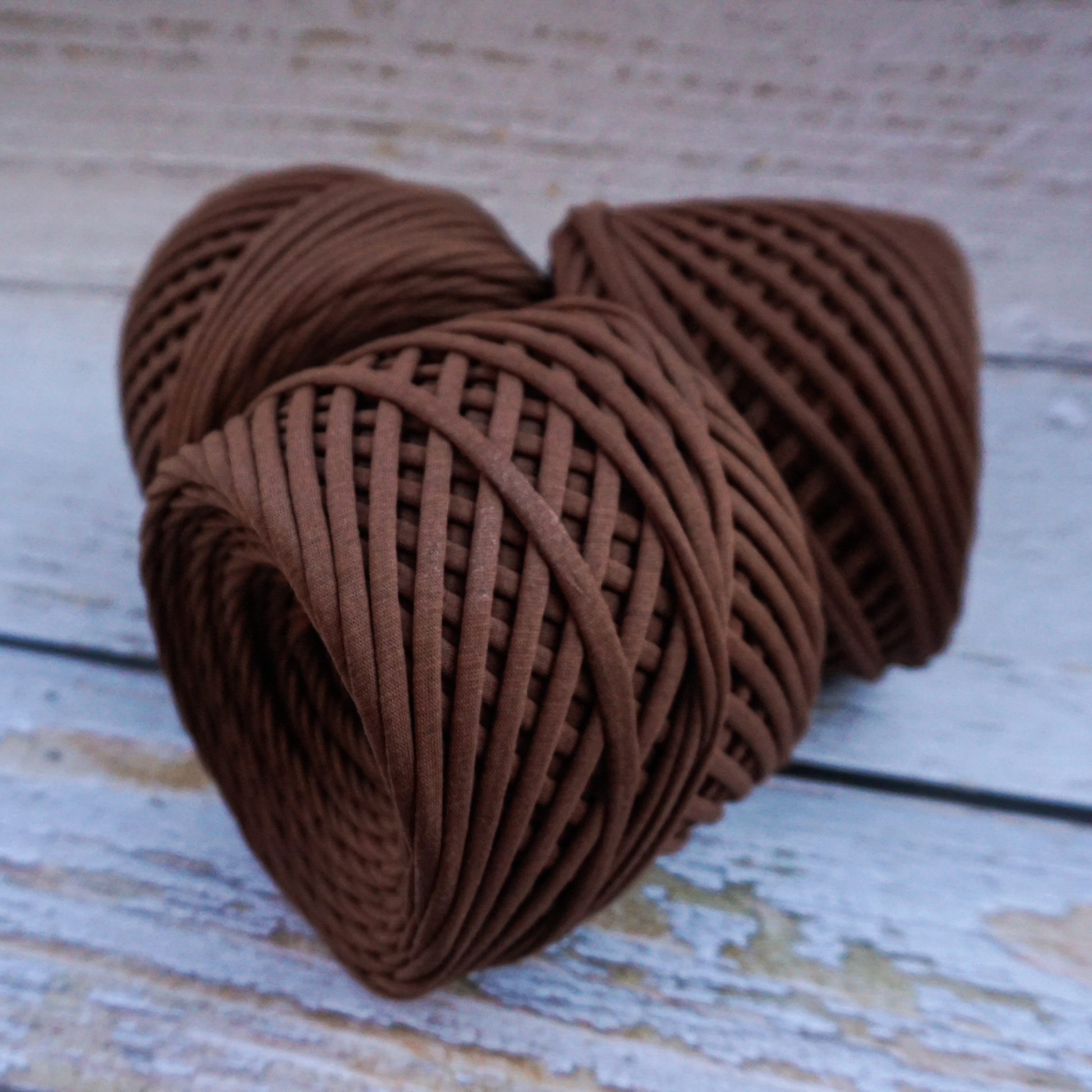 Premium quality fabric t-shirt yarn with equal thickness throughout all length with even edges. Very soft material yet finished items hold its shape. It is truly a pleasure to work with this yarn of great variety of colors. Cacao 10